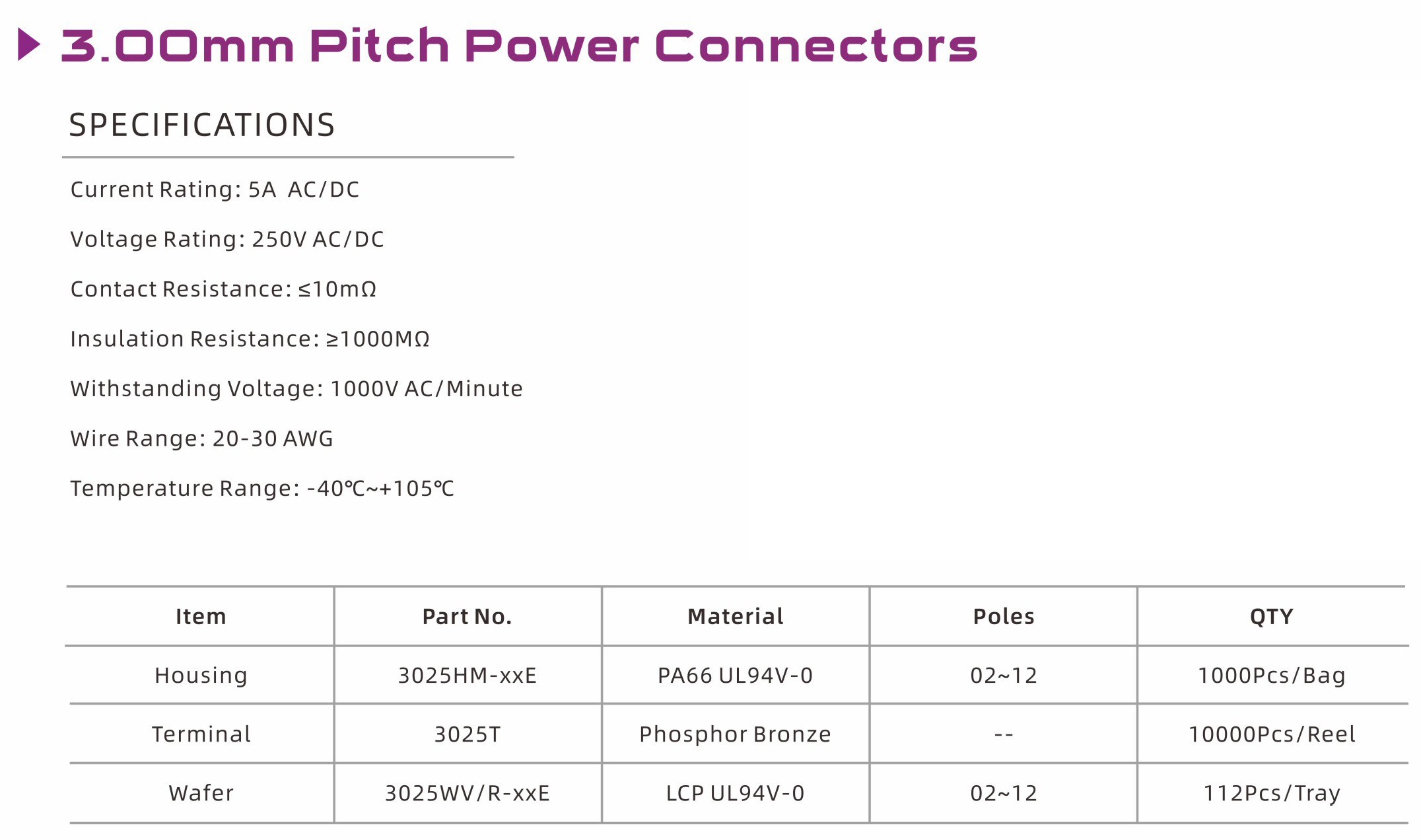 3025E Series 3.00mm Pitch (.118") 车用连接器
